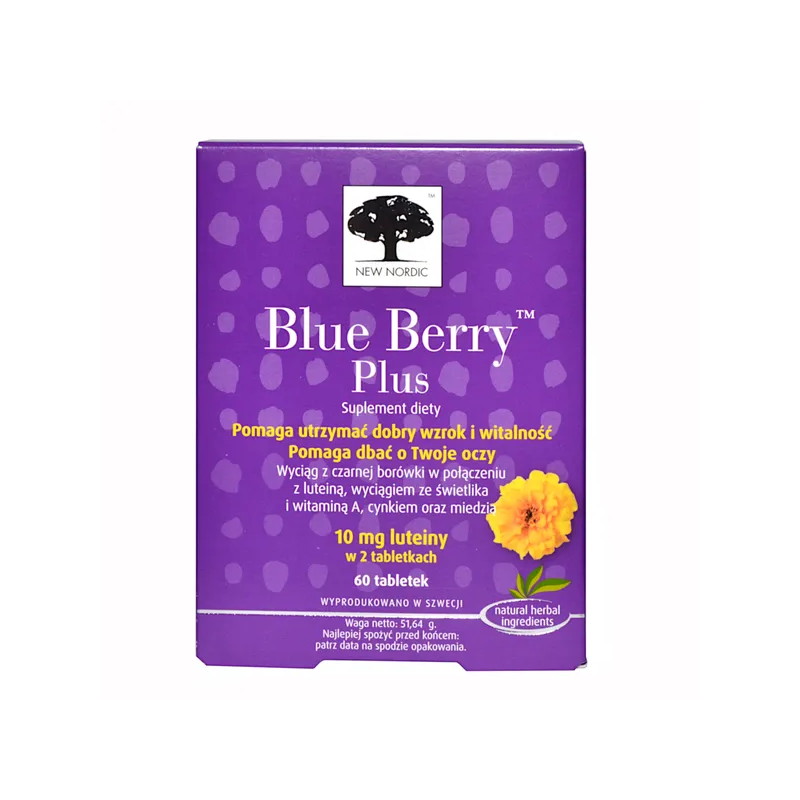 Składniki suplementu diety Blue Berry Plus pomagają dbać o Twoje oczy i wspierają witalność dzięki zastosowaniu wyciągu z czarnej borówki, miedzi, cynku oraz witaminy A.