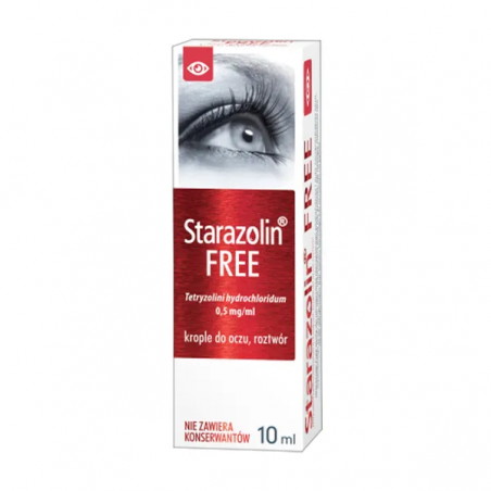 Starazolin Free to lek w postaci kropli do oczu bez środka konserwującego. Zmniejsza zaczerwienienie oczu wywołane czynnikiem drażniącym lub w przebiegu alergii.
