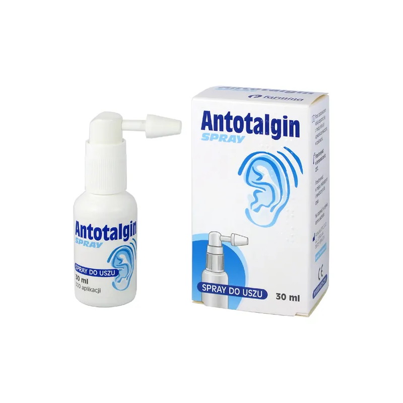 Wyrób medyczny Antotalgin to spray do usuwaniu woskowiny z zewnętrznego kanału słuchowego. Produkt przeznaczony jest dla dzieci powyżej 1 roku życia, młodzieży oraz dla osób dorosłych.