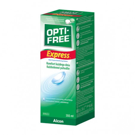 Wyrób medyczny Alcon Opti-Free Express sprawdza się w codziennej pielęgnacji wszystkich miękkich soczewek kontaktowych. Produkt usuwa osady białkowe, działa bakteriobójczo oraz grzybobójczo, niszczy Acanthamoeba sp. Utrzymuje soczewki czyste i wygodne w użyciu.