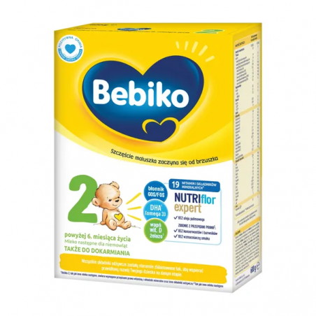 Mleko następne Bebiko 2 Nutriflor Expert to produkt do dalszego żywienia dla niemowląt, które ukończyły 6 miesiąc życia. Odpowiednie do stosowania w momencie rozszerzania diety, w okresie odstawiania od piersi i po jego zakończeniu oraz do dokarmiania, o ile zaistnieje taka potrzeba. Mleko następne powinno stanowić element różnorodnej diety malucha. Bebiko 2 w proszku nadaje się również do przygotowywania kleików i bezmlecznych kaszek.