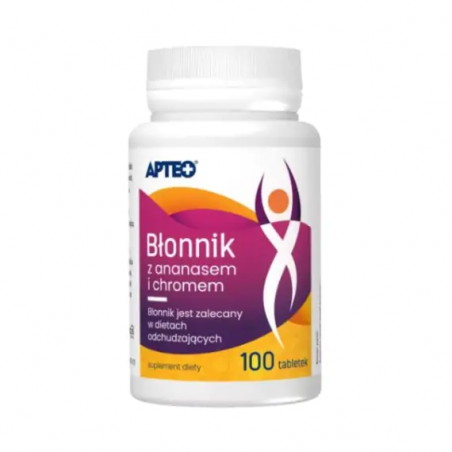Błonnik pęcznieje w żołądku, dając uczucie sytości - dzięki temu pomaga zmniejszyć apetyt. Błonnik z ananasem i chromem Apteo zawiera w składzie trzy rodzaje błonnika - jabłkowy, owsiany i pszeniczny. Chrom bierze udział w metabolizmie glukozy. Sam chrom nie wpłynie na pozbycie się niepotrzebnych kilogramów, ale może być składnikiem wspomagającym przy odpowiedniej diecie odchudzającej i aktywności fizycznej.