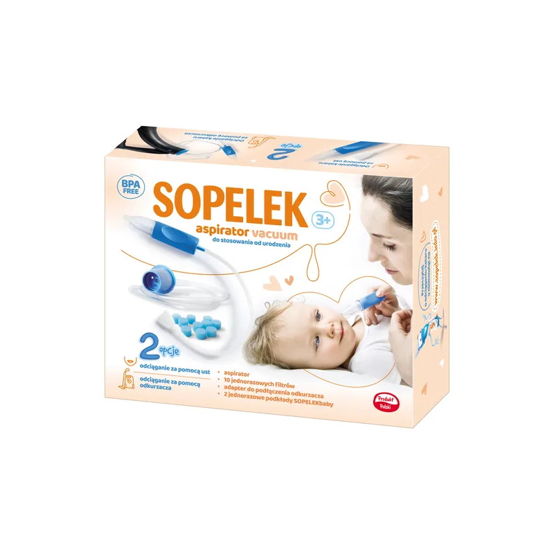 Aspirator SOPELEK 3+ przeznaczony jest do usuwania wydzieliny z nosa dziecka, co umożliwa swobodne oddychanie.