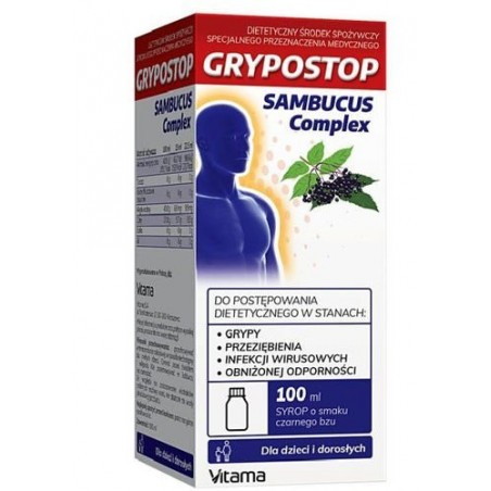 Grypostop Sambucus Complex w formie syropu jest przeznaczony do postępowania dietetycznego w stanach: przedgrypowych, grypy, przeziębienia, infekcji wirusowych lub obniżonej odporności.