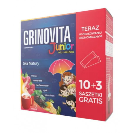 Grinovita Junior to suplement diety dla dzieci od 3. roku życia wskazany do stosowania w celu uzupełnienie niedoboru składników wspierających odporność. Zalecany zwłaszcza w okresach jesienno-zimowych i wiosennych.