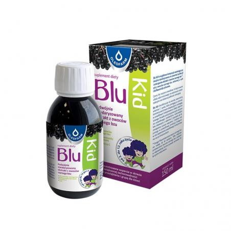 Blu Kid to suplement diety w formie syropu, stworzony z myślą o dzieciach w wieku od 3 do 12 lat, który wspiera ich układ odpornościowy. Dzięki zawartości ekstraktów z czarnego bzu, witaminy C, cynku i bioflawonoidów cytrusowych, preparat pomaga chronić komórki przed stresem oksydacyjnym, wzmacnia odporność oraz przyczynia się do zmniejszenia uczucia zmęczenia i znużenia.