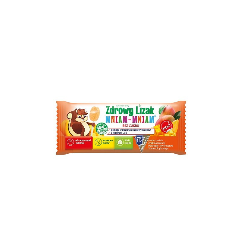 Podstawowym składnikiem Zdrowego Lizaka Mniam–Mniam jest fiński ksylitol który wykazuje działanie przeciwpróchnicze. Dostępny w 4 smakach: mango, cytryna, malina, truskawka.