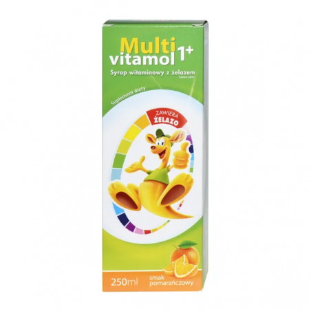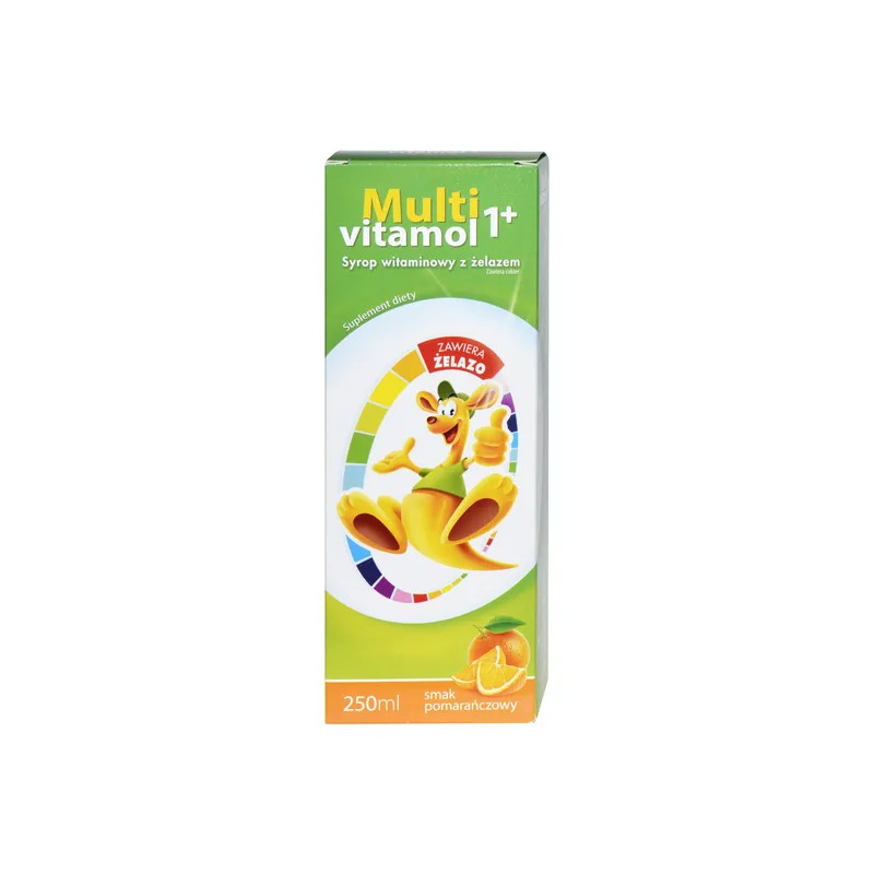 Multivitamol 1+ to syrop zawierający 8 witamin i żelazo.