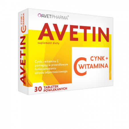 Avetin Cynk + Witamina C wspiera odporność organizmu, co jest szczególnie ważne w okresie jesienno – zimowym. Dobre źródło witaminy C wzbogacające dietę to nieocenione wsparcie dla organizmu ponieważ nie jest on w stanie wytworzyć jej samodzielnie. Stosując Avetin Cynk + Witamina C masz pewność, że wybierasz suplement diety, który pomaga dostarczyć tak ważny kwas L-askorbinowy oraz cynk nie tylko w trudnym okresie jesienno-zimowym ale przez cały rok.