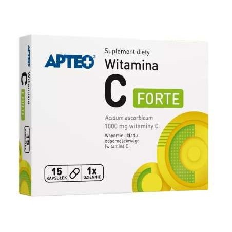 Suplement diety Apteo Witamina C 1000 przeznaczony do stosowania jako uzupełnienie codziennej diety w witaminę C.
