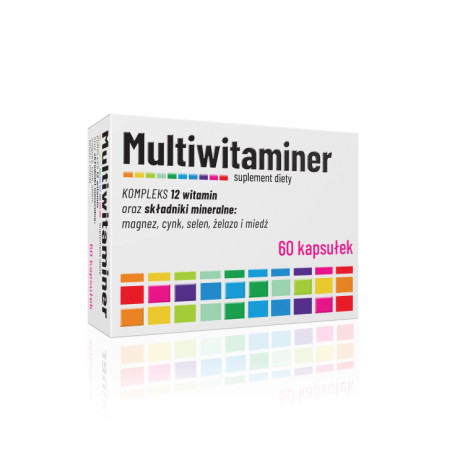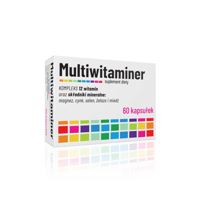 Multiwitaminer to suplement diety zawierający kompleks 12 najważniejszych witamin oraz składniki mineralne: magnez, cynk, selen, żelazo i miedź. Produkt przeznaczony dla osób dorosłych.