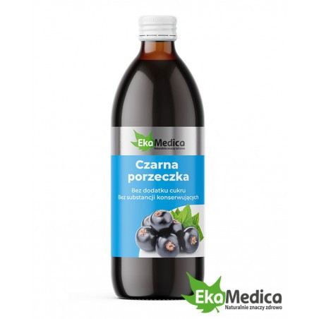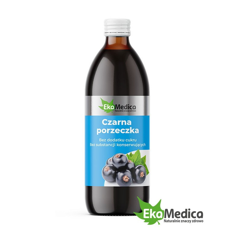 Czarna porzeczka - suplement diety w formie płynnej, wyprodukowany z soku 100% z owoców czarnej porzeczki z dodatkiem naturalnej witaminy C pochodzącej z ekstraktu z owoców camu-camu. Pasteryzowany.