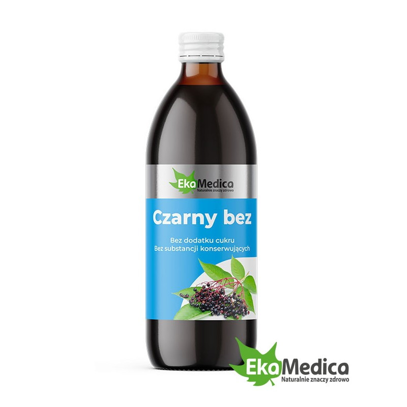 Czarny bez EkaMedica posiada głęboki ciemnofioletowy kolor i intensywny, lekko cierpki, charakterystyczny dla soku z bzu smak. Otrzymywany jest bez dodatku cukru i konserwantów z dojrzałych owoców bzu.