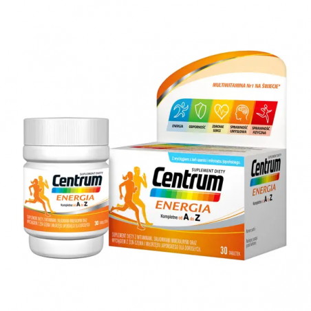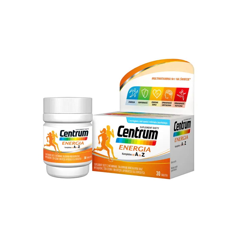 Centrum Energia – suplement diety w postaci tabletek zawierający kompleks witamin, składników mineralnych w połączeniu z wyciągiem z żeń-szenia oraz miłorzębu japońskiego. Produkt przeznaczony dla osób dorosłych.
