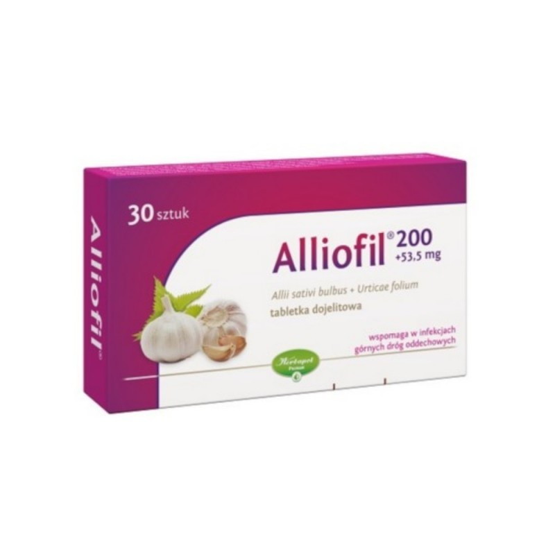 Preparat na bazie czosnku stosowany profilaktycznie i wspomagająco w przeziębieniach oraz infekcjach górnych dróg oddechowych.