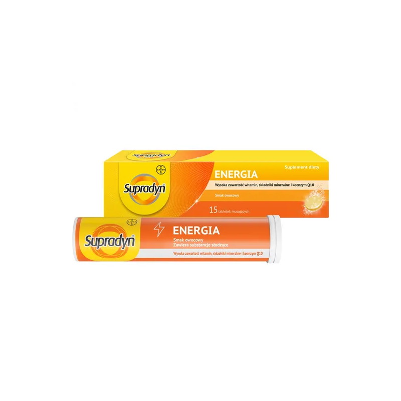 Supradyn® Energia to suplement diety w postaci wygodnych do stosowania tabletek musujących o smaku owocowym. Multiwitamina przeznaczona jest dla aktywnych osób dorosłych, w szczególności w okresach wzmożonego wysiłku fizycznego i umysłowego.