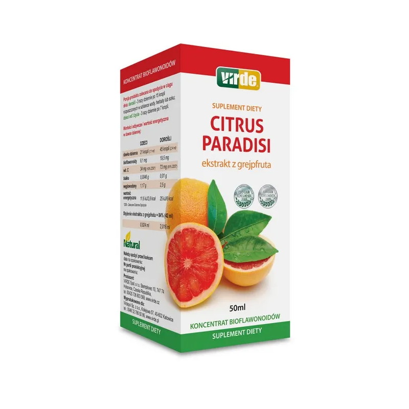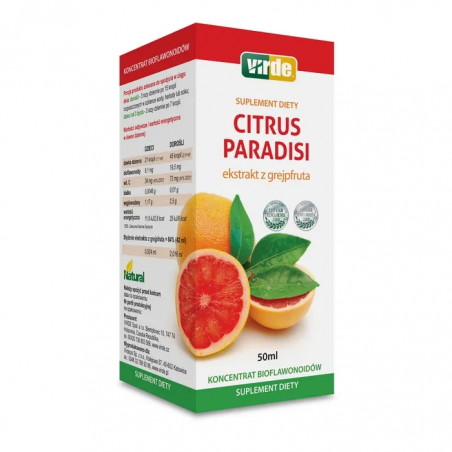Citrus Paradisi to wyciąg z pestek, miąższu i białych części grejpfruta zawierający kompleks bioflawonoidów oraz witaminę C, która pomaga w prawidłowym funkcjonowaniu układu odpornościowego.