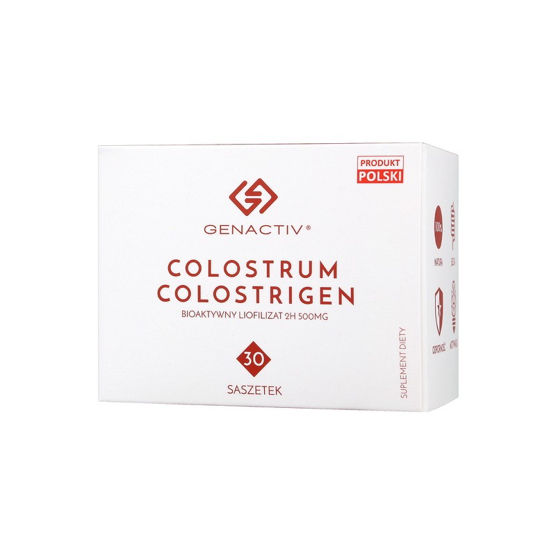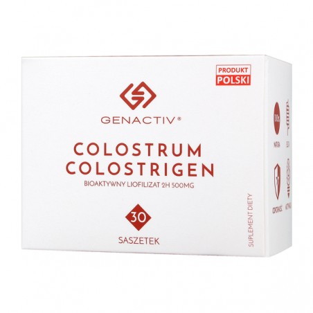 Colostrigen to liofilizowane colostrum pozyskiwane z pierwszej godziny po ocieleniu. Składniki colostrum bovinum, w szczególności peptydy bogate w prolinę oraz laktoferyna pomagają w utrzymaniu prawidłowego funkcjonowania organizmu, dzięki wspieraniu utrzymania i rozwoju naturalnych mechanizmów obronych. Suplement diety wspomaga regenerację błony śluzowej jelit oraz pozytywnie wpływa na utrzymanie sił witalnych i funkcji poznawczych. Dodatkowo Colostrigen korzystnie wpływa na pielęgnację skóry oraz wspiera odporność na działanie stresu.