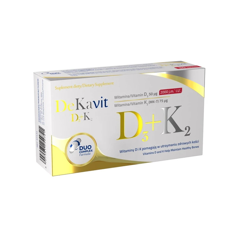 Zawiera witaminę D3 pozyskiwaną z lanoliny oraz naturalną witaminę K2 o wysokiej przyswajalności – menachinon-7 (MK-7) otrzymywaną ze sfermentowanych nasion soi.