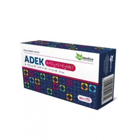 EkaMedica ADEK to suplement diety w formie miękkich kapsułek wskazany do codziennego zażywania celem wzbogacenia diety w witaminy: A, D, E i K. Produkt przeznaczony dla osób dorosłych.