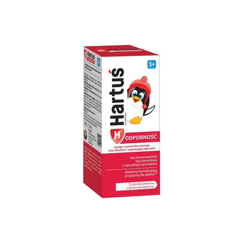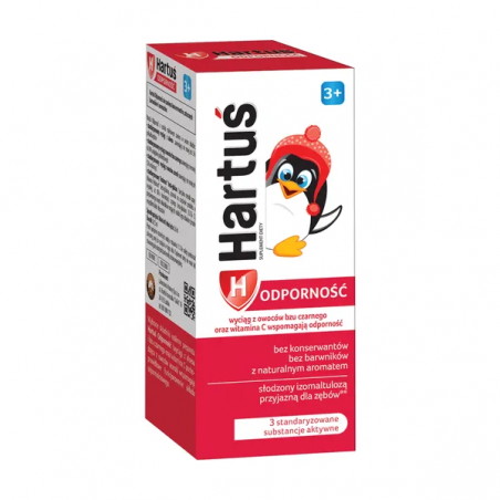 Hartuś Odporność, syrop, 120 ml - suplement diety zawierający roślinne składniki o działaniu wzmacniającym, szczególnie polecany dzieciom, u których mechanizmy obronne organizmu nie są jeszcze w pełni wykształcone.
