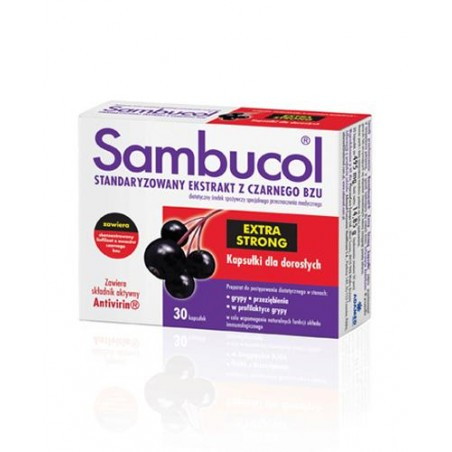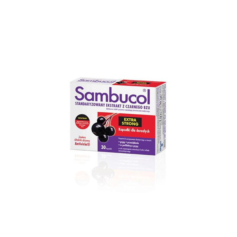 Sambucol Extra Strong to suplement diety w postaci kapsułek przeznaczony dla osób dorosłych, które ukończyły 18. rok życia. Jego receptura zawierająca standaryzowany ekstrakt z owoców bzu czarnego, witaminę C i cynk, została skomponowana w taki sposób, by wspierać pracę układu immunologicznego. Preparat jest szczególnie polecany w okresach wymagającym dodatkowego wsparcia odporności organizmu, np. w okresie jesienno-zimowym.
