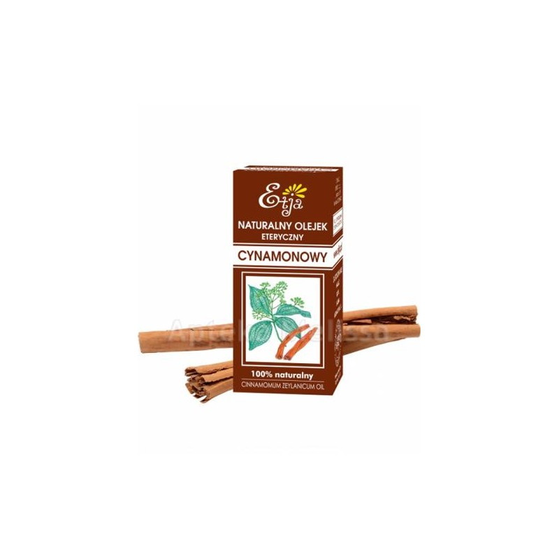 ETJA Olejek cynamonowy wpływa na likwidację cellulitu i nadmiernej tkanki tłuszczowej. Ma właściwości rozgrzewające, zwalczające bóle reumatyczne. Jest pomocny w walce z infekcjami górnych dróg oddechowych, przeziębieniem i katarem.