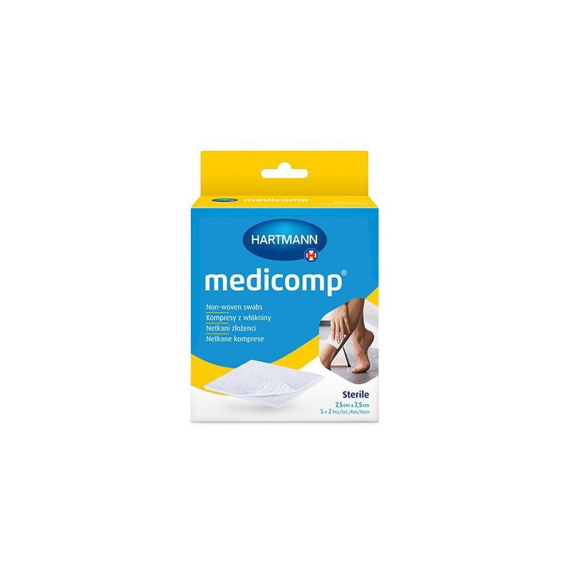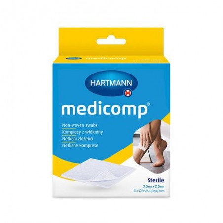 Wyrób medyczny Medicomp to jałowe kompresy o wymiarach 7,5 x 7,5 cm, umożliwiające zaopatrywanie lub oczyszczanie niewielkich ran.