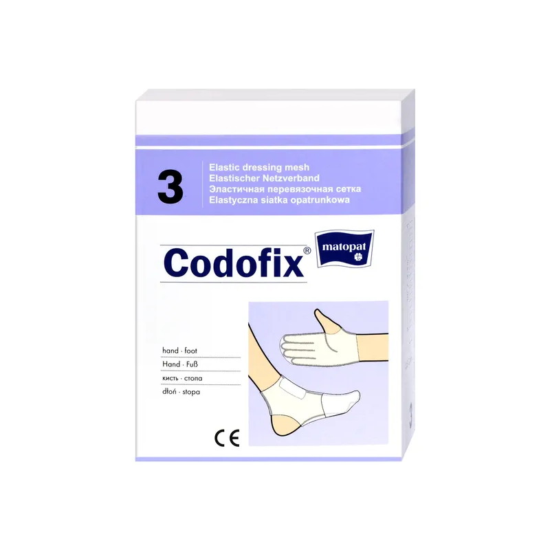 Codofix 2 to elastyczna siatka opatrunkowa (szerokość 1,5-2,5 cm, długość 1 m) przeznaczona do podtrzymywania opatrunków na palcu lub dłoni, stanowiąca zamiennik dla bandaży i przylepców. Wykonana z dobrze tolerowanej przez skórę przędzy poliuretanowo-poliamidowej, jest łatwa w użyciu, dopasowuje się do ciała i nie krępuje ruchów.