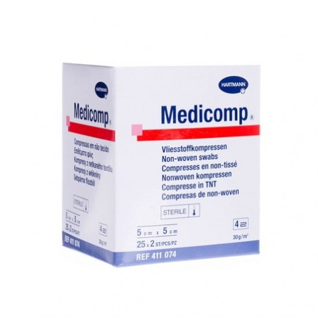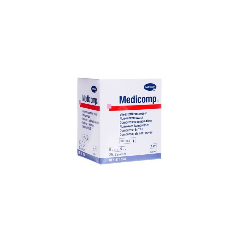 Kompresy włókniste jałowe Medicomp, 4 warstwowe przeznaczone są do opatrywania ran przy zabiegach ambulatoryjnych i stacjonarnych