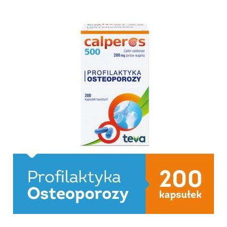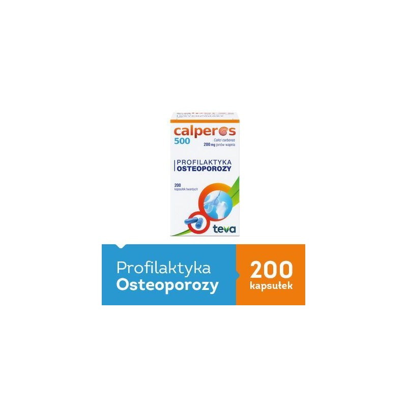 1 kapsułka zawiera 500mg węglanu wapnia (200mg Ca2+) oraz substancje pomocnicze: magnezu stearynian, talk; skład kapsułki żelatynowej: tytanu dwutlenek (E171), indygotyna (E132), żelatyna.
