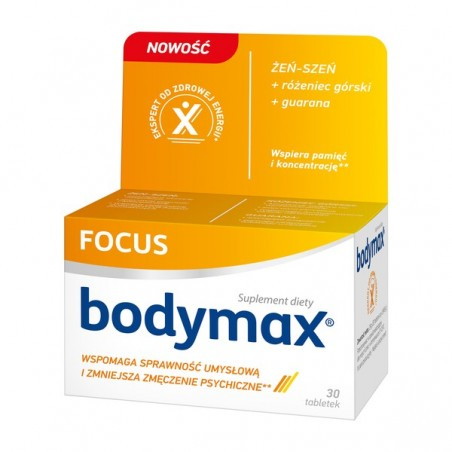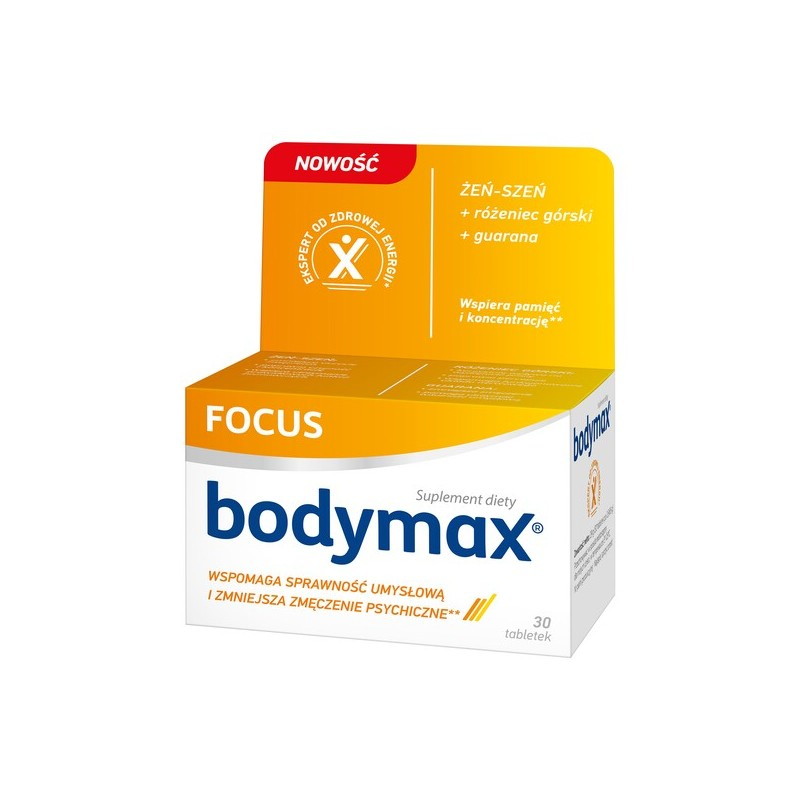 Bodymax Focus - suplement diety zawierający unikalne połączenie trzech standaryzowanych ekstraktów roślinnych. Produkt przeznaczony dla osób dorosłych.
