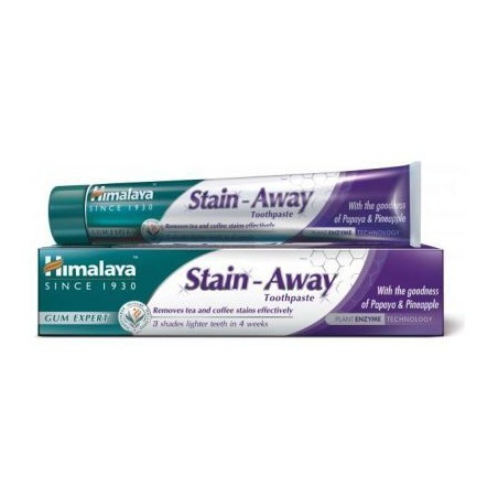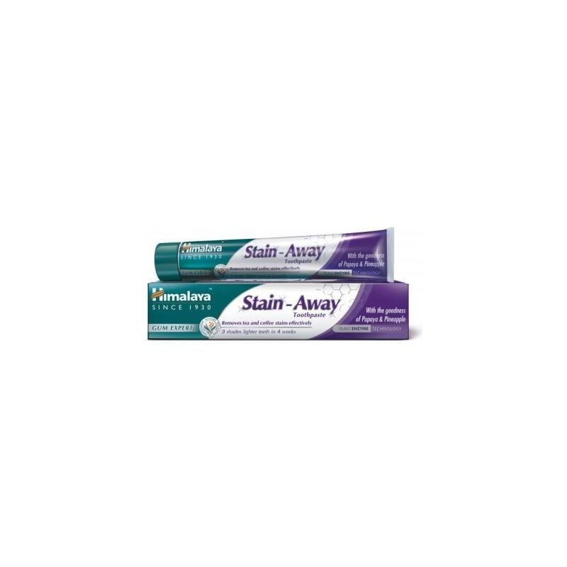 Himalaya Stain Away pasta przeciw przebarwieniom, 75 ml skutecznie usuwa przebarwienia zębów, powstałe na skutek spożywania kawy i herbaty. Zęby mogą stać się nawet o 3 odcienie bielsze już po 4 tygodniach regularnego stosowania. Pasta nie zawiera fluoru.