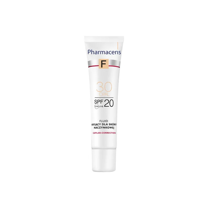 Fluid kryjący dla skóry naczynkowej, Opal 30 – maskuje rozszerzone naczynka i zaczerwienienia skóry oraz zapobiega nadwrażliwości skóry. Wzmacnia naczynia krwionośne poprzez hamowanie uwalniania cząsteczek prozapalnych. Idealnie dopasowuje się do skóry wyrównując jej koloryt. Zawiera filtry UVA/UVB.