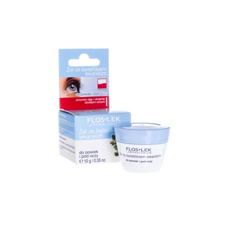 Żel ze świetlikiem lekarskim to ziołowy kompres na okolice oczu. Zawarty w żelu świetlik lekarski działa kojąco, usuwa zmęczenie, ból oczu, łzawienie. Żel ze świetlikiem nawilża i wygładza skórę, przywraca jej jędrność i elastyczność.