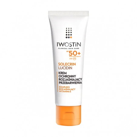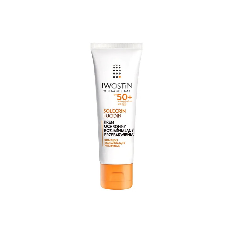 Krem na przebarwienia, SPF 50+, Iwostin Solecrin Lucidin, chroni skórę przed szkodliwym promieniowaniem UVA i UVB.