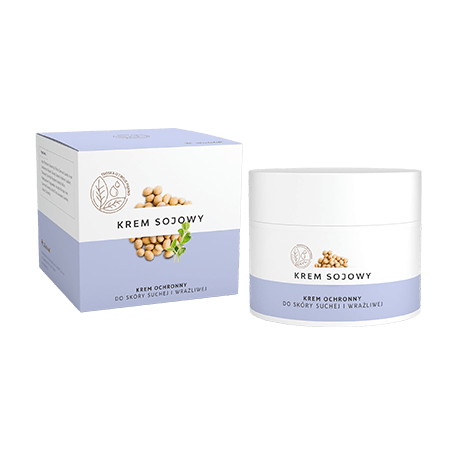 Krem sojowy - zapewnia skórze ochronę przed negatywnym działaniem czynników zewnętrznych. W składzie kosmetyku znajduje się między innymi: witamina C, E, olej lniany, olej rycynowy.