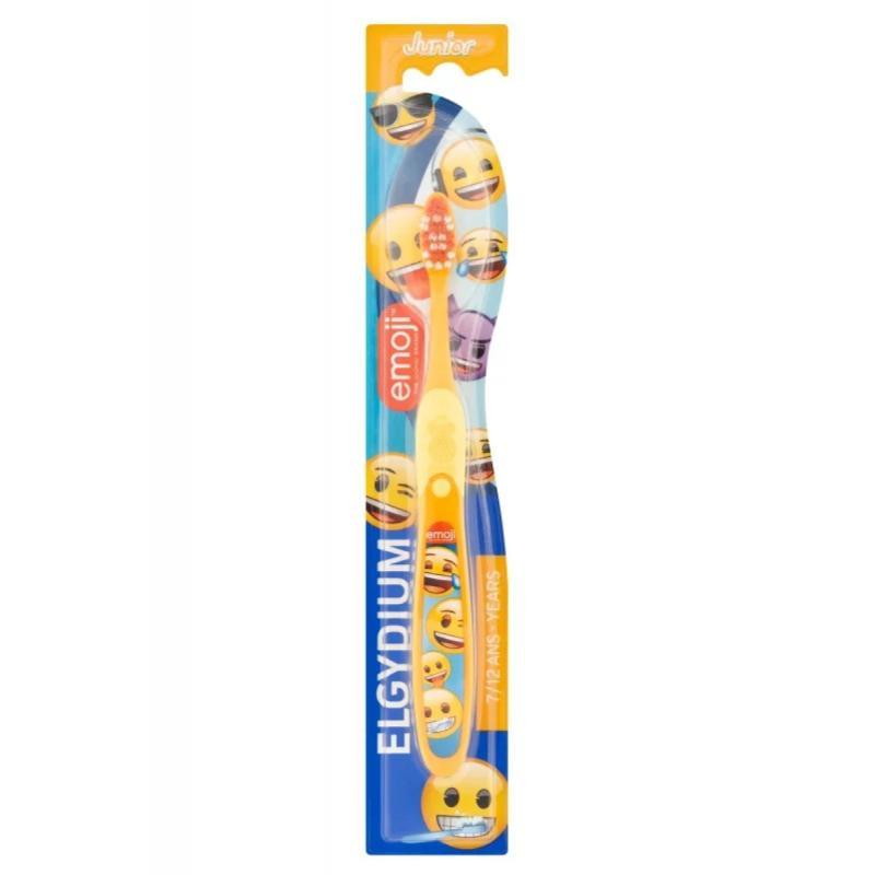 Elgydium Emoji Junior, szczoteczka do zębów dla dzieci – przeznaczona dla dzieci w wieku 7-12 lat. Szczoteczka została zaprojektowana z myślą o bezpiecznej i efektywnej pielęgnacji zębów mlecznych i stałych. Wielkość główki szczoteczki została dopasowana do buzi dzieci i pozwala na swobodne dotarcie oraz bezpieczne oczyszczanie wszystkich zębów. Miękkie, dłuższe włosie jest bezpieczne dla delikatnych dziąseł dziecka. Krótkie włókna czyszczą zęby dokładnie usuwając osady i naloty. Włosie szczoteczki zostało uformowane tak aby jeszcze dokładnej doczyszczać miejsca trudno dostępne takie jak okolice przestrzeni międzyzębowych czy linię dziąseł. Wygodna rączka ułatwia samodzielne szczotkowanie zębów przez dziecko. Dobrze leży w dłoni i nie wyślizguje się co minimalizuje ryzyko przypadkowego uszkodzenia dziąseł.