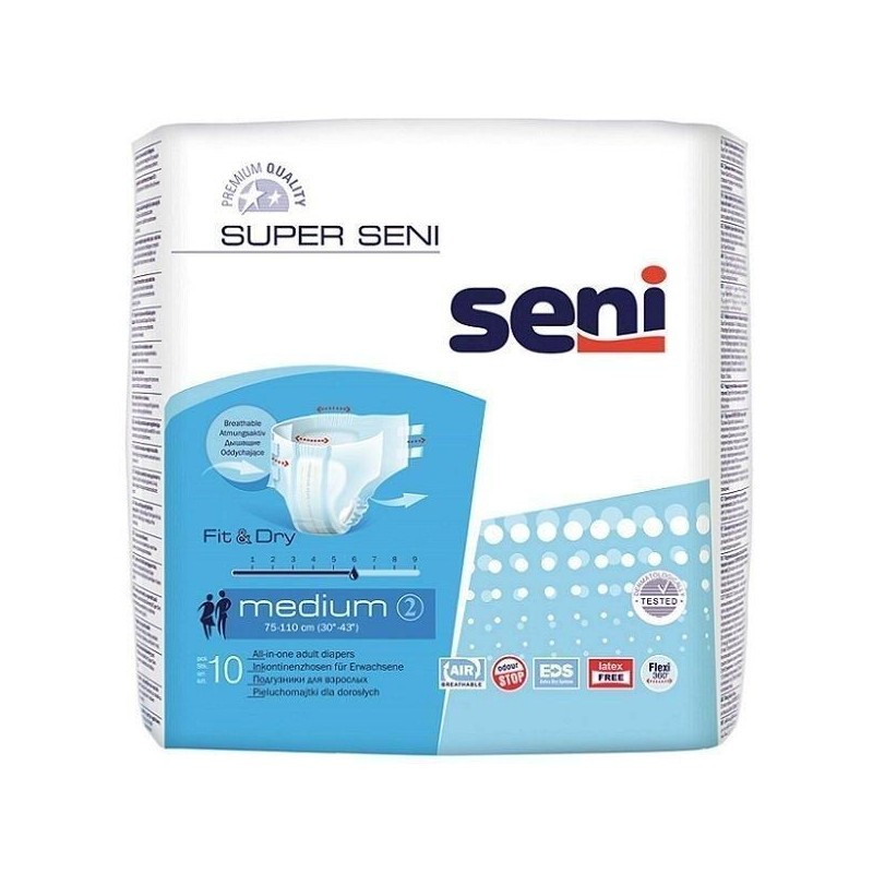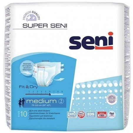 Pieluchomajtki dla dorosłych Seni Super przeznaczone są dla osób ze średnim stopniem nietrzymania moczu.
