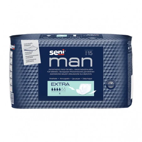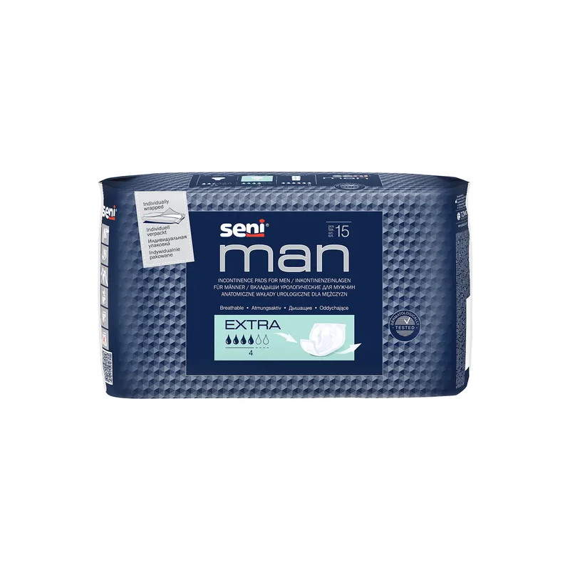 Wyrób medyczny Seni Man Extra to wkładki urologiczne przeznaczony dla mężczyzn cierpiących na lekkie nietrzymanie moczu.