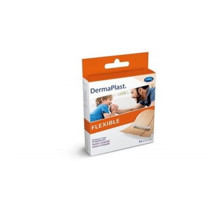 Plastry Dermaplast Flexible elastyczne do cięcia. Plaster jest idealny do ruchomych części ciała, gdyż wykonany został ze sprężystego i rozciągliwego materiału, który bardzo dobrze dopasowuje się do kształtu ciała. Bardzo dobrze sprawdza się u osób aktywnych, gdyż nie odkleja się przy poruszaniu, przy tym nie ograniczając ruchów. Plastry nie przywierają do ran i odrywają się bezboleśnie.