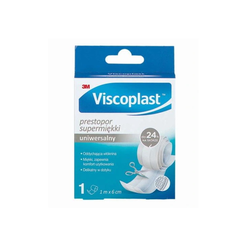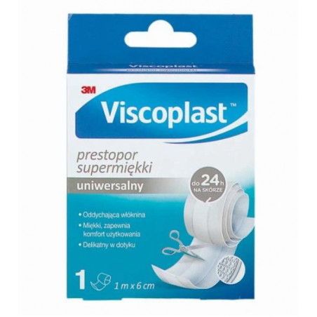 Plaster Viscoplast Prestopor Supermiękki jest wyjątkowo delikatny. Wykonany z delikatnego materiału przepuszczającego powietrze i o dobrej przyczepności do skóry. Chroni drobne rany przed zanieczyszczeniem. Opatrunek nie przykleja się do rany, co ułatwia usuwanie. Można przyciąć do pożądanego rozmiaru. Nie zawiera lateksu.