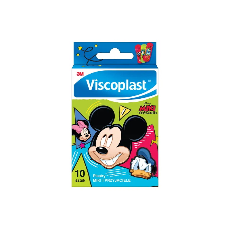 Viscoplast Plastry Miki i Przyjaciele zawiera 10 sztuk plastrów z kolorowymi grafikami. Kultowe postaci z bajki Disney’a zostały stworzone z myślą o najmłodszych. Produkt dopasowuje się do ciała i przepuszcza powietrze. Opatrunek nie przywiera do rany i można go łatwo i bezboleśnie usunąć. Plastry mogą być stosowane również na skórze wrażliwej.