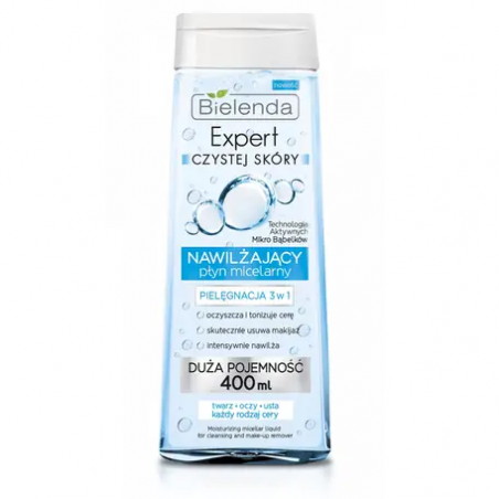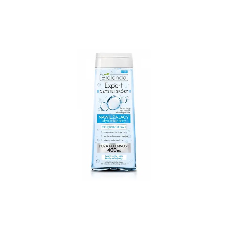 Nawilżający płyn micelarny 3w1 do mycia i demakijażu twarzy, oczu i ust - efektywnie zastępuje mleczko, tonik, mydło i wodę: myje i oczyszcza jak woda i mydło, neutralizuje i odświeża jak tonik, nawilża i pielęgnuje jak mleczko.