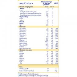 Laktoza z mleka, odtłuszczone mleko w proszku (27%), oleje roślinne (sojowy, słonecznikowy, kokosowy, rzepakowy) w zmiennych proporcjach, maltodekstryna, galaktooligosacharydy z mleka (4,5%), wapń, potas, fruktooligosacharydy (0,3%), magnez, sód, witamina C, emulgator (lecytyny z soi), inozytol, aromat waniliowy, żelazo, cynk, kwas pantotenowy, witamina E, przeciwutleniacz (palmitynian L-askorbylu), niacyna, ryboflawina, tiamina, witamina A, witamina B6, jod, kwas foliowy, witamina K, witamina D, biotyna, witamina B12.