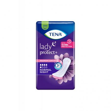 Wyrób został specjalnie zaprojektowany, aby zapewnić bezpieczeństwo w tracie leżenia i snu. Dzięki szerszej i dłuższej tylnej części podpaska może być z powodzeniem stosowana w nocy. Nadaje się przy lekkim i średnim nietrzymaniu moczu. Dzięki swojej wysokiej chłonności, Tena Lady Normal Night pomaga utrzymać uczucie świeżości a obecność specjalnych mikroperełek dodatkowo kontroluje nieprzyjemny zapach.