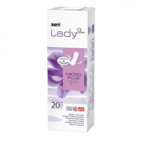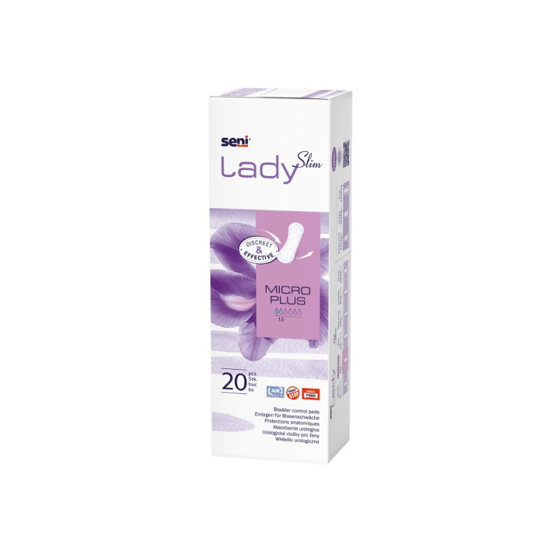Seni Lady Slim Micro Plus to oddychające wkładki urologiczne stworzone z myślą o kobietach prowadzących aktywny tryb życia, ceniących sobie komfort i bezpieczeństwo połączone z dyskrecją. Mogą być stosowane także przez osoby leżące, stale unieruchomione.