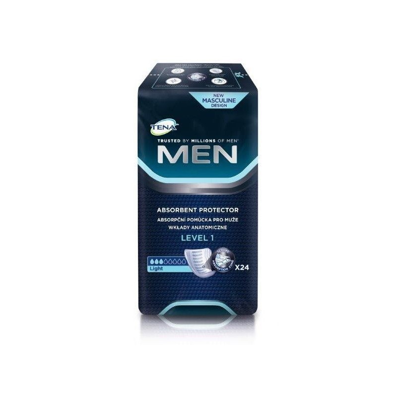Wyrób medyczny TENA Men Light to cienkie wkłady anatomiczne dla mężczyzn w każdym wieku, z problemem kropelkowego, lekkiego nietrzymania moczu.