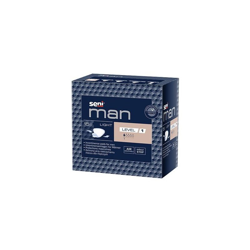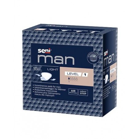 Seni Man Light Level 1 to przewiewne wkładki urologiczne stworzone z myślą o mężczyznach z niewielkim nietrzymaniem moczu, prowadzących aktywny tryb życia, ceniących sobie komfort, bezpieczeństwo oraz dyskrecję.