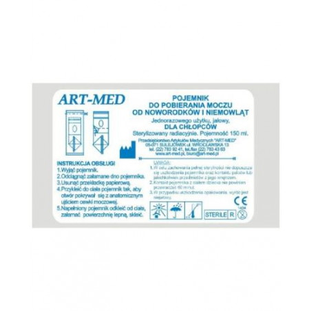 Informacje dodatkowe Pojemnik jałowy do pobierania moczu od noworodków i niemowląt dla chłopców 150 ml, 1 szt.